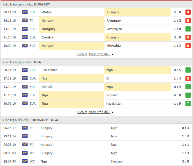 Thống kê phong độ & Lịch sử đối đầu Hungary vs Nga