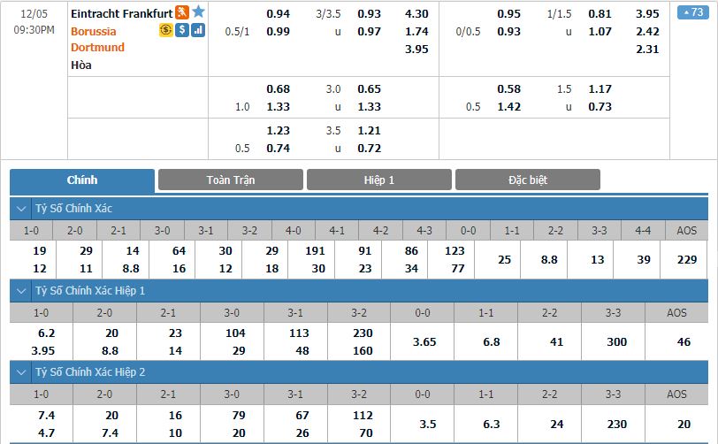 - Tỷ lệ kèo bóng đá Eintracht Frankfurt vs Borussia Dortmund