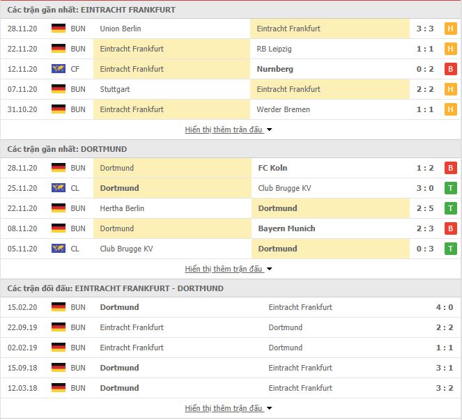 Thống kê phong độ & Lịch sử đối đầu Eintracht Frankfurt vs Borussia Dortmund