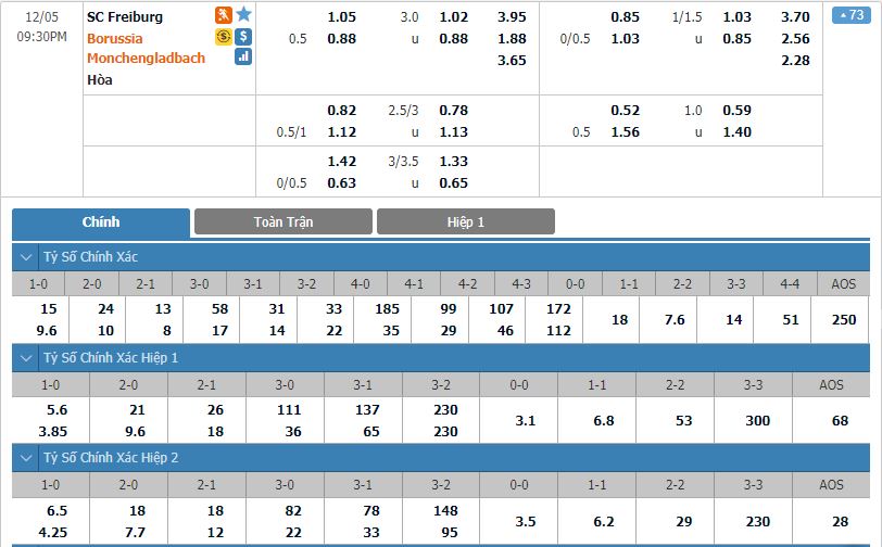 - Tỷ lệ kèo bóng đá SC Freiburg vs Borussia Monchengladbach