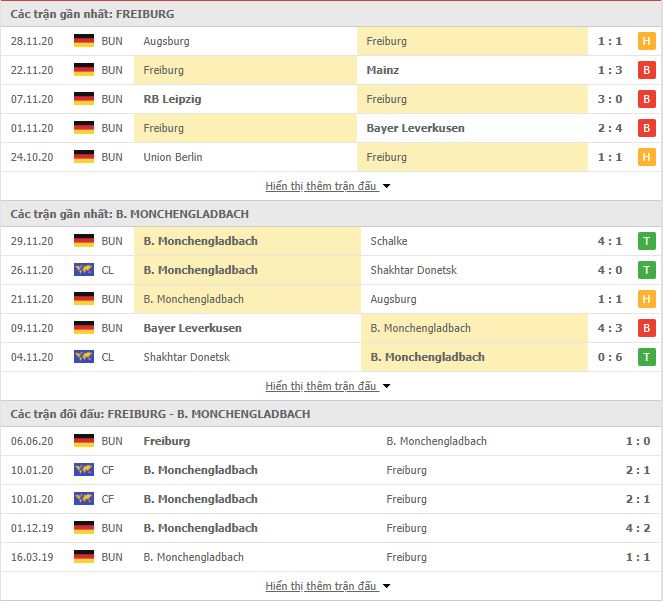 Thống kê phong độ & Lịch sử đối đầu SC Freiburg vs Borussia Monchengladbach