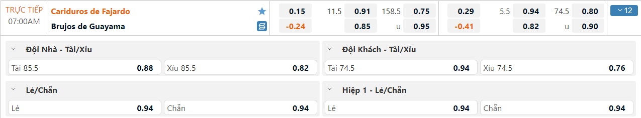 Nhận định tỷ số/tài xỉu chung cuộc Cariduros vs Brujos
