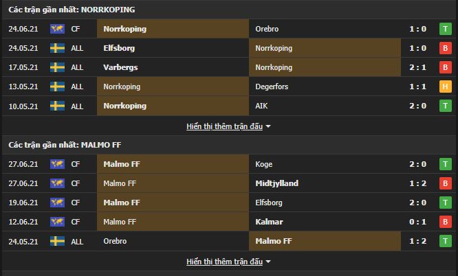 Phong độ gần đây Norrkoping vs Malmo: