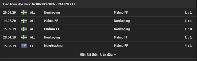 Thành tích đối đầu Norrkoping vs Malmo: