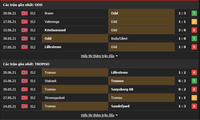 Phong độ gần đây ODD Ballklubb vs Tromso: