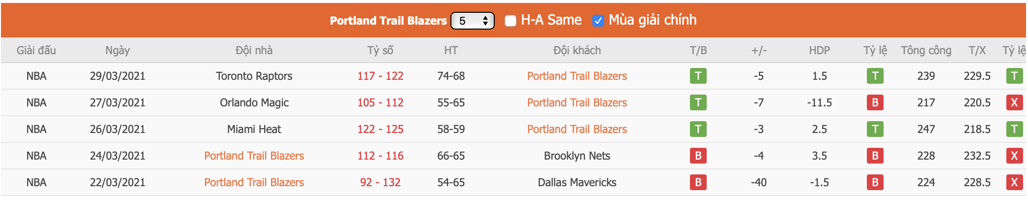 Phong độ gần đây Portland Trail Blazers vs Los Angeles Clippers
