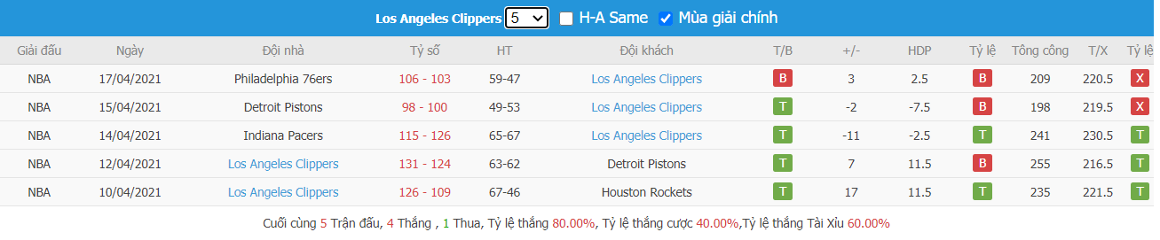 - Phong độ Los Angeles Clippers