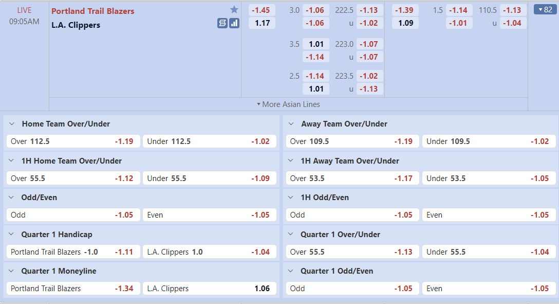 Bảng tỷ lệ kèo Portland Trail Blazers vs Los Angeles Clippers