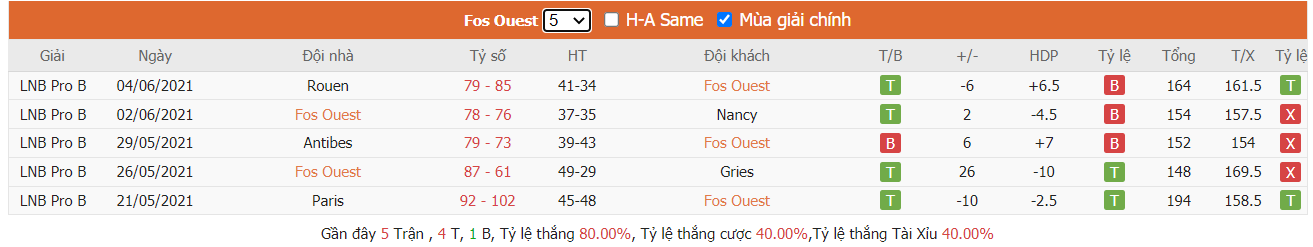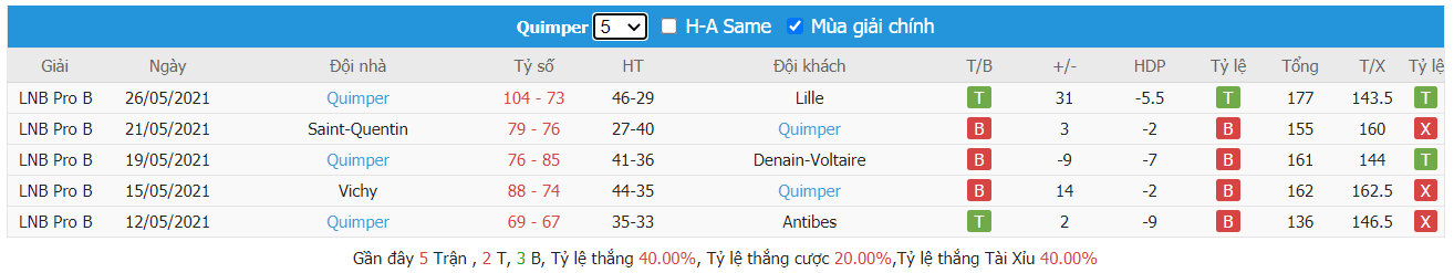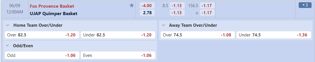 Bảng tỷ lệ kèo Provence Basketball vs UJAP Quimper
