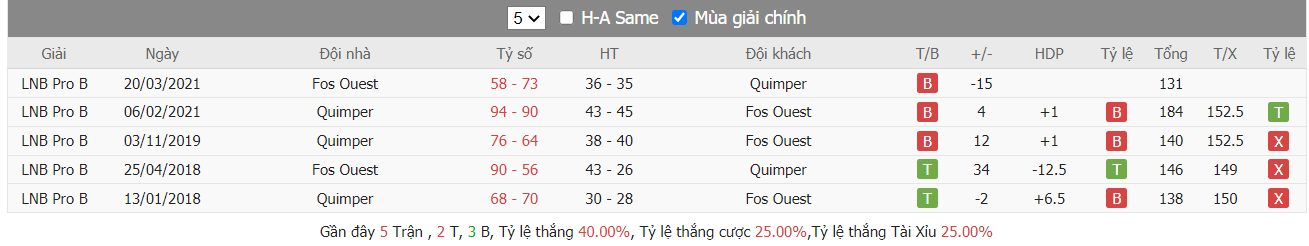 Thống kê cho thấy hàng công của cả hai đội vẫn đang duy trì phong độ hiệu quả cần thiết trong thời gian qua khi mà cứ trung bình mỗi trận trong tổng số 5 trận ra sân gần nhất, Provence Basketball đã ghi được tới 91 điểm. Trong khi đó 88 cũng là số điểm trung bình mỗi trận mà UJAP Quimper cũng đã ghi được trong tổng số 5 trận ra sân gần nhất. Như vậy cửa tài vẫn được đánh giá cao ở trận tới khi mà đã có tới 9 trên tổng số 11 trận so tài gần nhất của hai bên cũng đều đã khép lại với các kết quả chung cuộc nổ tài.