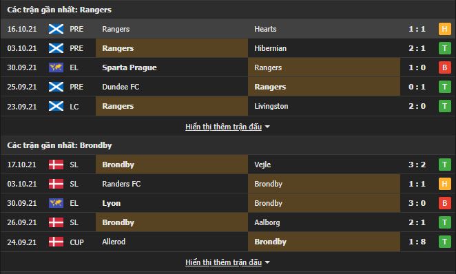 Phong độ gần đây Rangers vs Brondby:
