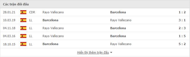 Thành tích đối đầu Rayo Vallecano vs Barcelona