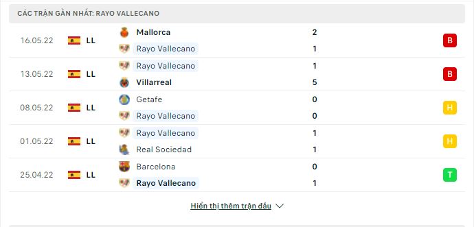 - Phong độ Rayo Vallecano