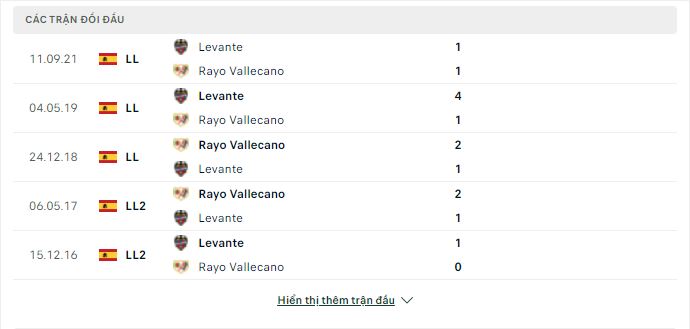 Thành tích đối đầu Rayo Vallecano vs Levante