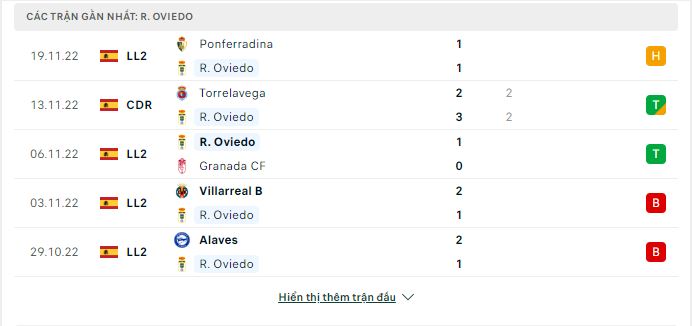 Phong độ gần đây Real Oviedo vs CD Mirandes