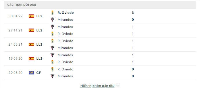 Thành tích đối đầu Real Oviedo vs CD Mirandes