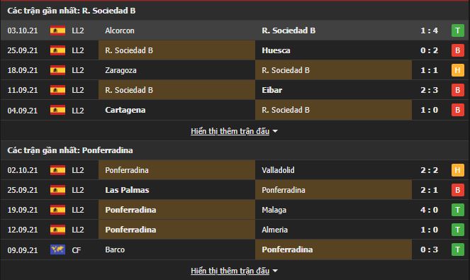 Phong độ gần đây Real Sociedad B vs Ponferradina: