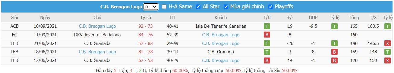 Thống kê về thành tích đối đầu của hai bên trong quá khứ cho thấy Real Betis CooSur hoàn toàn chưa được đánh giá cao khi đã để thua tới 5 trong 7 lần đối đầu gần nhất với chính Río Breogán cũng như đã có tới 3 lần chịu trắng tay sau 5 lần tiếp đón chính Río Breogán ngay trên sân nhà gần nhất. Trong số đó ở lần chạm mặt gần nhất Río Breogán đã giành được chiến thắng với tỉ số 108 – 101 khi đối đầu với chính Real Betis CooSur ngay trên sân nhà. Không những vậy Río Breogán cũng đã thắng kèo theo TLCA tới 2 trên 3 trận sân khách gần nhất tức đạt hiệu suất 67% trong khi Real Betis CooSur chỉ thắng kèo được 1 trong 2 trận đón khách đã qua. Như vậy thấy rõ dù đang sở hữu được lợi thế sân bãi nhưng không loại trừ khả năng Real Betis CooSur sẽ phải nhận thất bại đầu tiên trong mùa giải mới.