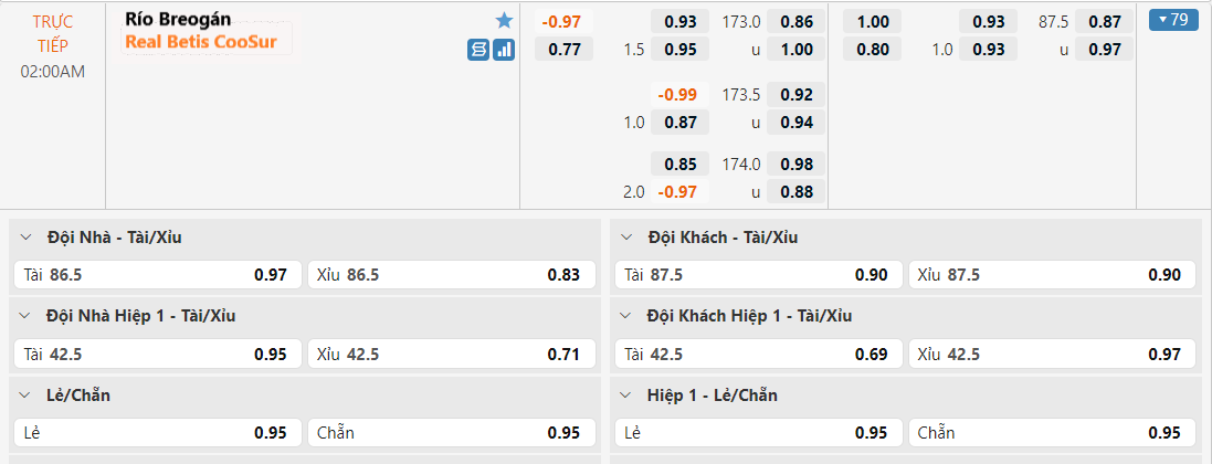 Bảng tỷ lệ kèo Río Breogán vs Real Betis CooSur