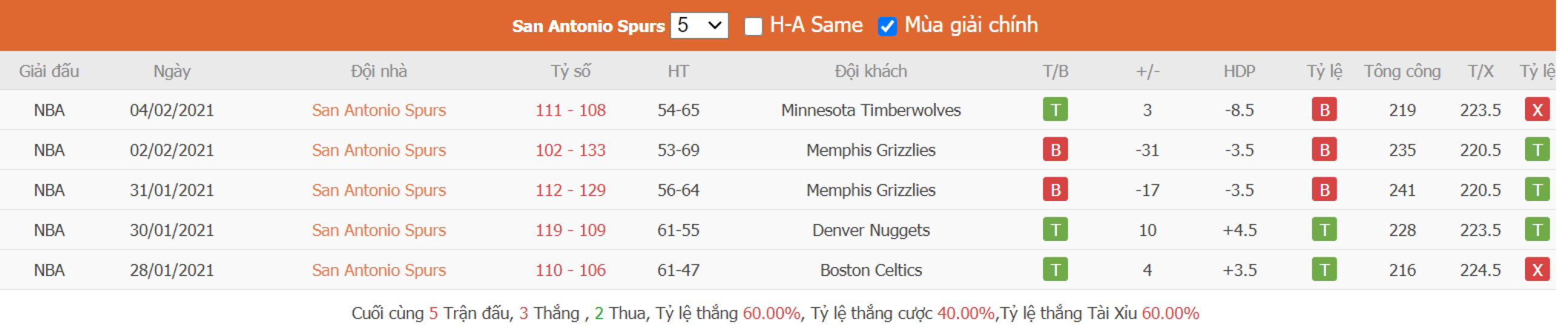 - Phong độ San Antonio Spurs