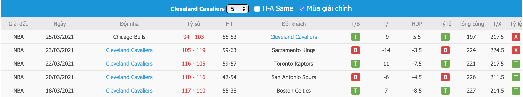 - Phong độ Cleveland Cavaliers