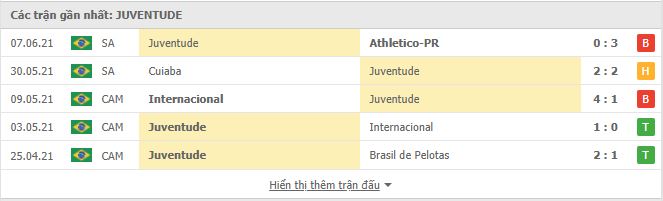 10 bàn thua ở 4 trận đấu gần nhất trên sân khách đương nhiên không thể là thống kê đảm bảo cho một ngày thi đấu sạch lưới của Juventude ở chuyến đi lần này. Thậm chí việc phải nhận không dưới 2 bàn thua với các học trò HLV Marquinhos cũng là kịch bản không quá bất ngờ. Thống kê cũng cho thấy 4/5 trận gần nhất của đội bóng tân binh khép lại với ít nhất 3 lần lưới rung. Do đó, lựa chọn tài được nhận định sẽ mang tới sự yên tâm cho các nhà đầu tư.