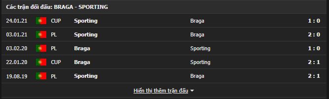 Thành tích đối đầu SC Braga vs Sporting CP:
