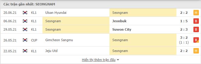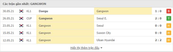 Thống kê phong độ gần đây Seongnam FC vs Gangwon FC