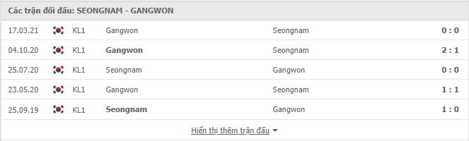 Thành tích đối đầu Seongnam FC vs Gangwon FC