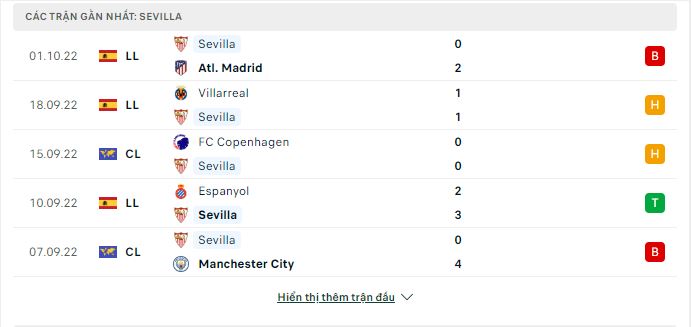 Phong độ gần đây Sevilla vs Borussia Dortmund