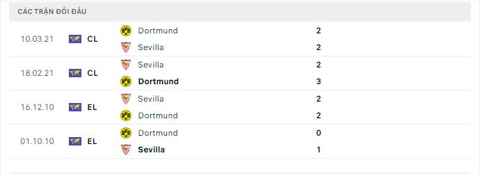 Thành tích đối đầu Sevilla vs Borussia Dortmund