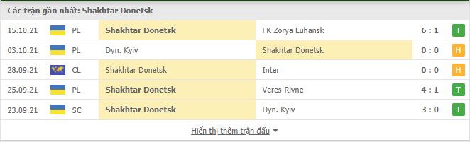 Thống kê phong độ gần đây Shakhtar Donetsk vs Real Madrid