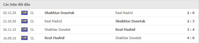 Thành tích đối đầu Shakhtar Donetsk vs Real Madrid