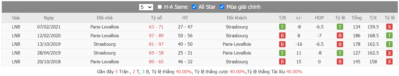 Thống kê về thành tích đối đầu của hai đội trong quá khứ, kết quả cho thấy dù không có lợi thế được ra sân ngay trên sân nhà ở trận đấu tới nhưng Metropolitans 92 hoàn toàn được đánh giá cao hẳn khi đã giành được tuyệt đối tới 6 thắng lợi trên tổng số 8 lần so tài gần nhất của hai bên trong quá khứ kể từ 12/2016 cho đến nay, trong đó cũng đã có tới 5 trận được diễn ra trên sân của Metropolitans 92. Trong số đó ở lần gặp nhau gần nhất của hai đội được diễn ra hồi tháng 2 vừa qua, khi đó với lợi thế sân nhà Metropolitans 92 đã giành được thắng lợi 107 – 103 khi tiếp đón SIG Strasbourg ngay trên sân nhà. Như vậy thấy rõ Metropolitans 92 chính là lựa chọn sáng hơn hẳn dành cho giới đầu tư ở trận tới.