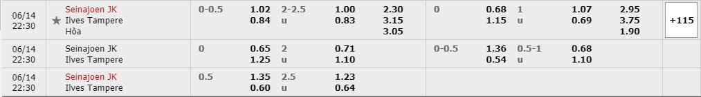 Bảng tỷ lệ kèo bóng đá SJK vs Ilves Tampere