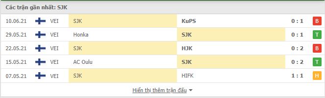 Thống kê phong độ gần đây SJK vs Ilves Tampere
