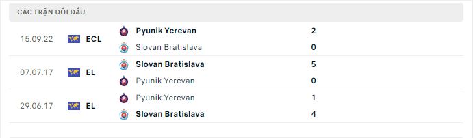 Thành tích đối đầu Slovan Bratislava vs Pyunik Yerevan