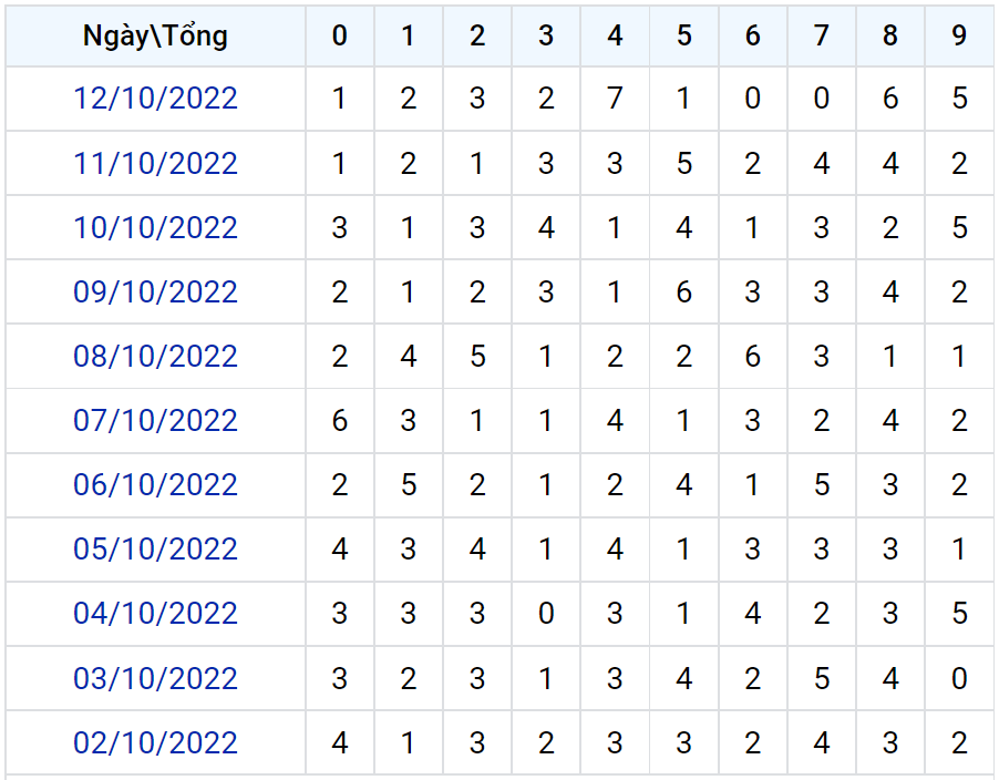 Thống kê loto XSMB theo tổng tính đến ngày 12/10/2022