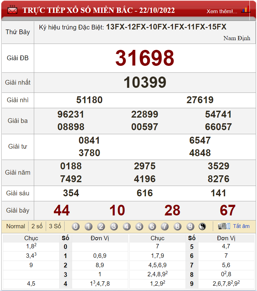 Kết quả cầu lô theo xổ số miền Bắc ngày 22/10/2022