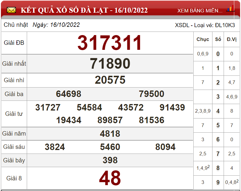 Kết quả lô đề theo xổ số Đà Lạt ngày 16/10/2022