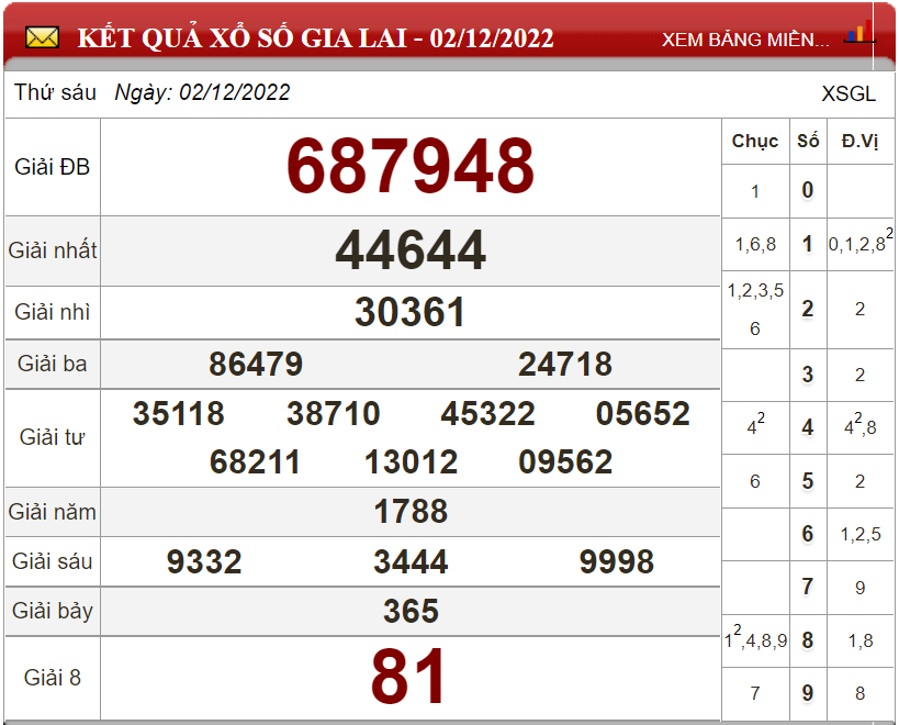 Kết quả lô đề theo xổ số Gia Lai ngày 02/12/2022