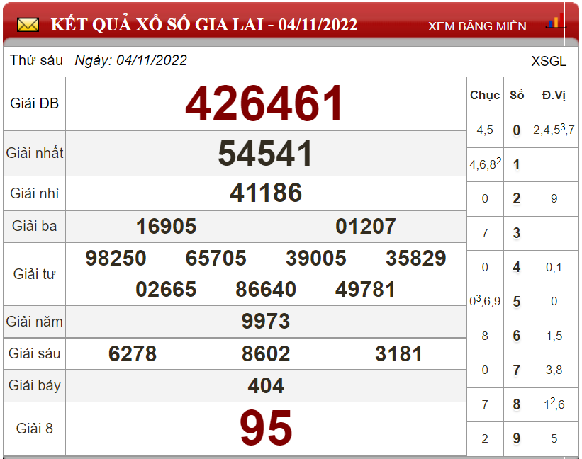 Kết quả lô đề theo xổ số Gia Lai ngày 04/11/2022