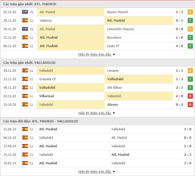 Phong độ gần đây & Thành tích đối đầu Atletico Madrid vs Valladolid