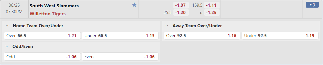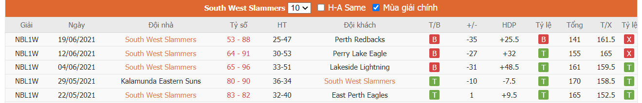 Bảng tỷ lệ kèo South West Slammers vs Willetton Tigers
