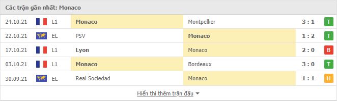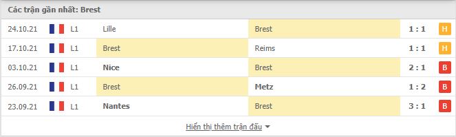 Thống kê phong độ gần đây Stade Brestois 29 vs Monaco