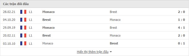 Thành tích đối đầu Stade Brestois 29 vs Monaco
