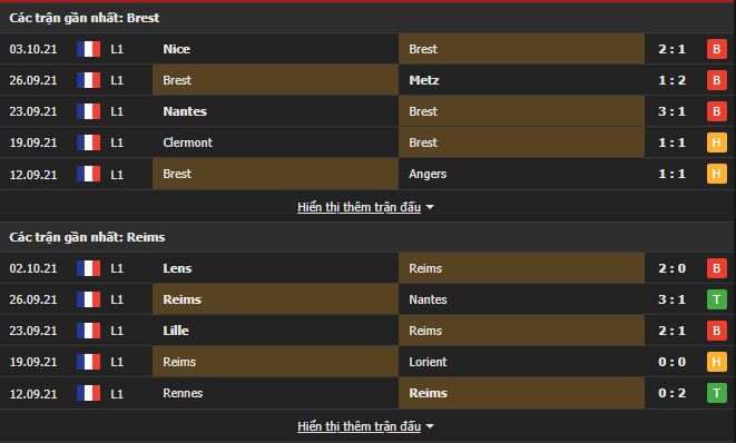 Phong độ gần đây Stade Brestois vs Reims:
