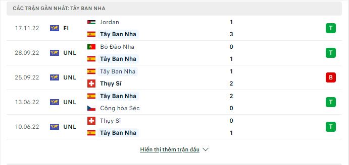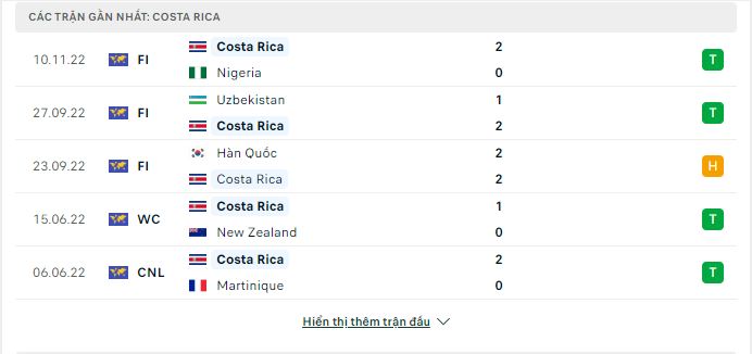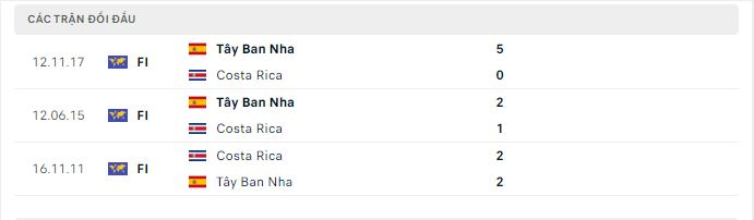 Thống kê phong độ gần đây Tây Ban Nha vs Costa Rica