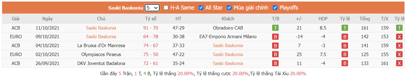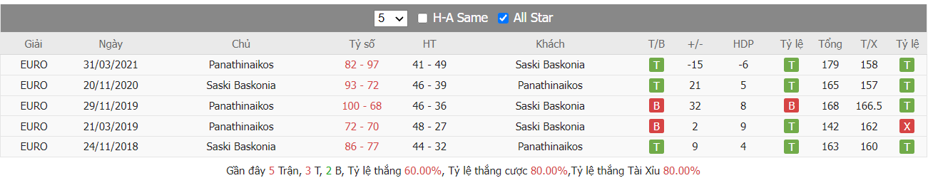 Phong độ gần đây TD Systems Baskonia vs Panathinaikos BC