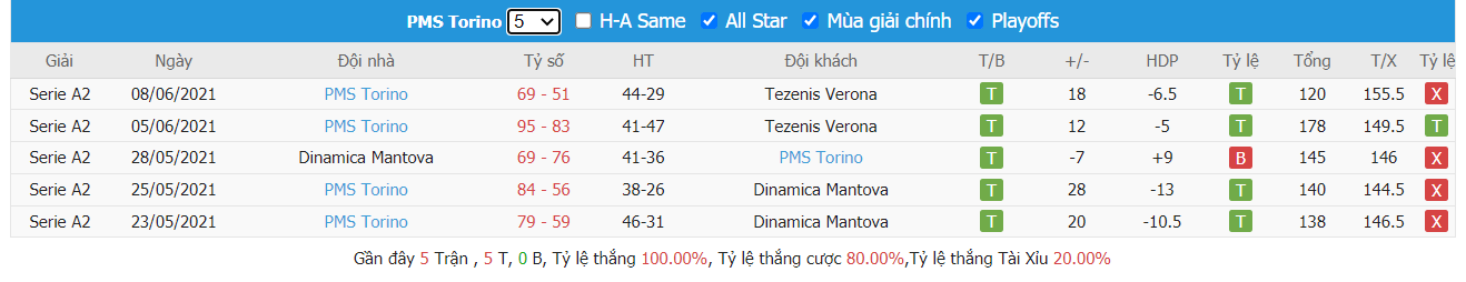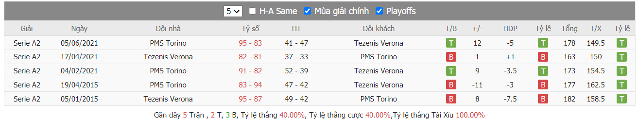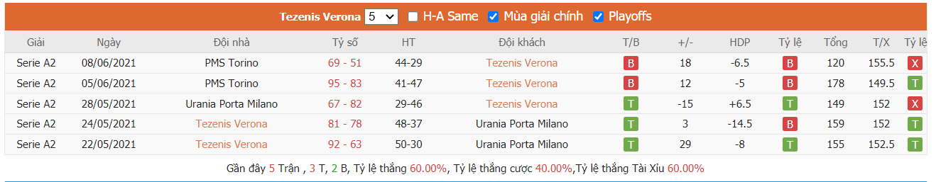 Thống kê cho thấy cả hai đội đều đang duy trì được sự phóng khoáng trong lối chơi khi mà cứ trung bình mỗi trận sau tổng số 6 trận ra sân gần đây nhất Tezenis Verona vẫn đều ghi được trung bình tới 84 điểm mỗi trận và cũng đã để đối thủ bỏ vào rổ nhà trung bình tới 87 điểm mỗi trận. Từ đó dẫn tới cả 5 trận ra sân gần nhất của đội khách đều đã vượt mức niêm yết về kèo tài xỉu theo TLCA. Bên kia sân cũng đã có tới 6 trên 9 trận ra sân gần nhất của Reale Mutua Torino đều đã khép lại với các kết quả chung cuộc nổ tài. Đồng thời Reale Mutua Torino cũng đã ghi được trung bình tới 80 điểm mỗi trận và sự lỏng lẽo nơi hàng thủ đã khiến đội bóng này để mất trung bình tới 91 điểm mỗi trận sau tổng số 6 trận ra sân gần đây nhất. Vậy nên khả năng bùng nổ tỷ số ở trận tới cũng rất đáng được kỳ vọng khi mà cũng đã có tới 6 trên tổng số 9 trận so tài gần nhất của hai đội đều đã khép lại với các kết quả chung cuộc nổ tài.